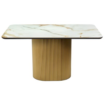 Высококачественная керамическая столешница: стол Festa обладает глянцевой премиальной столешницей из керамогранита Calacatte gold, имитирующей мрамор. Поверхность размером 1400х850 мм со скошенной кромкой не царапается, не впитывает жидкость и легко моется, что обеспечивает долгий срок службы и минимальный уход.