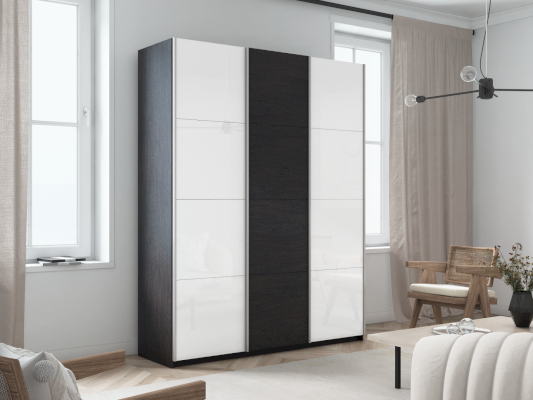 Серия «Прайм» отличается доступностью и функциональностью Навесные двери и лаконичная отделка фасадов создают прогрессивный дизайн. Подойдет тем, кто любит компактную и изящную мебель. Алюминиевые ручки и верхний ходовой профиль обеспечивают легкость и прочность конструкции. Многолетняя безупречная работа благодаря высококачественной немецкой фурнитуре Hettich. Прочная ПВХ-кромка толщиной до 1 мм защищает края от сколов и повреждений. Плавный ход дверей обеспечивает надежная система Hettich Top Line M. Дополнительно можно установить доводчики. Снаружи нет заглушек и винтов благодаря стяжечной системе крепления полок на флипперах, а корпус усилен эксцентриковыми стяжками. Навесные двери скрывают раздвижной механизм от глаз. Они надежно удерживаются в направляющих и не соскакивают. Каждая дверь поделена на 4 секции Секции расставляются в произвольном порядке, создавая новый дизайн фасада.