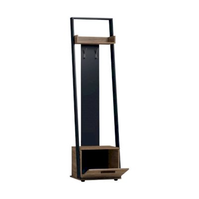 Оригинальная вешалка Nature 77 не займет много места в прихожей, но станет самой яркой деталью вашей входной зоны. Удачная комбинация ЛДСП в декорах Дуб Табачный и Черный является классическим сочетанием современного стиля лофт. Модуль выполняет функции открытой вешалки для верхней одежды и тумбы для обуви. Крепкие металлические крючки способны выдержать нагрузку до 5 кг каждый. Откидной фасад тумбы дополнительно фиксируется при закрывании магнитной защелкой. Регулируемые опоры позволят компенсировать незначительные неровности пола.