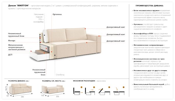 Диван Милтон (Империал) - за 60 776 руб. в Тюмени. Купите на сайте mebelmarket-tyumen.ru или по телефону 8(800)505-30-63 уже сегодня! Уточнить наличие, комплектацию, актуальную цену можно бесплатно у менеджера ежедневно. Закажите Диван Милтон (Империал) до конца акции! Доступна покупка в кредит, рассрочку. Доставим со склада или на заказ.
