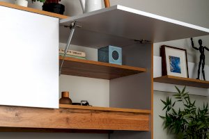 • Распашные фасады на четырехшарнирных петлях.