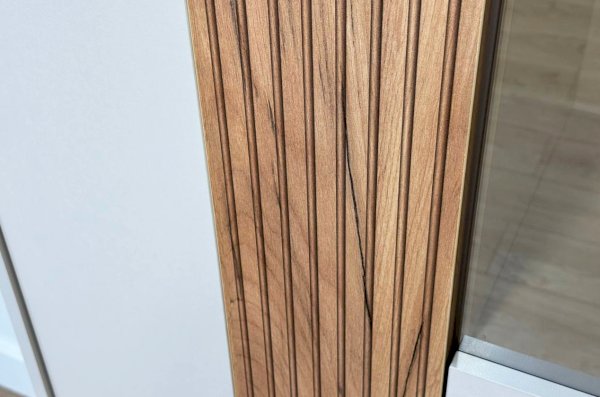 Фасад с принтом, имитирующим рельефную вставку цвета дуб крафт золотой.
