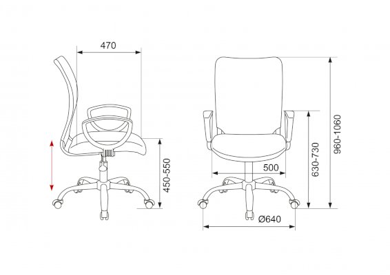 Высота с подлокотниками: 630-720