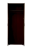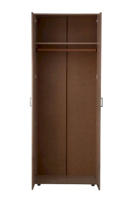 Шкаф двухдверный отличается простотой и лаконичностью оформления, внутри антресольная полка и штанга под одежду.
